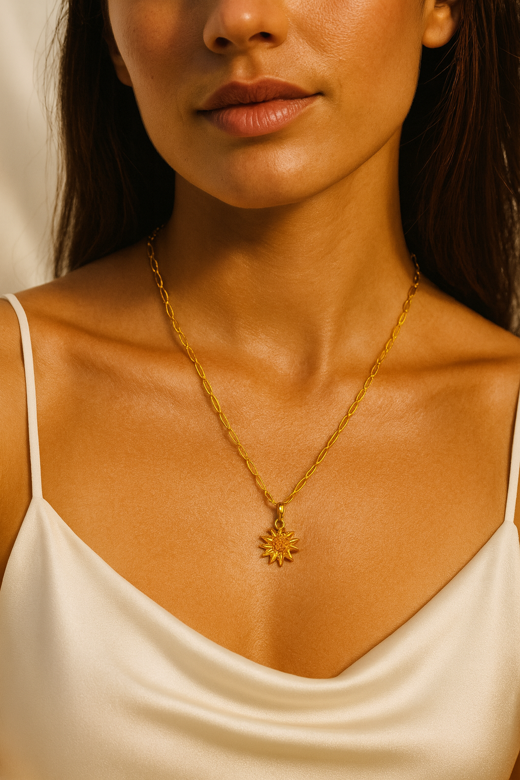 Altın Ayçiçeği Kolye – Kadınlar için Zarif Güneş Figürlü Kolye