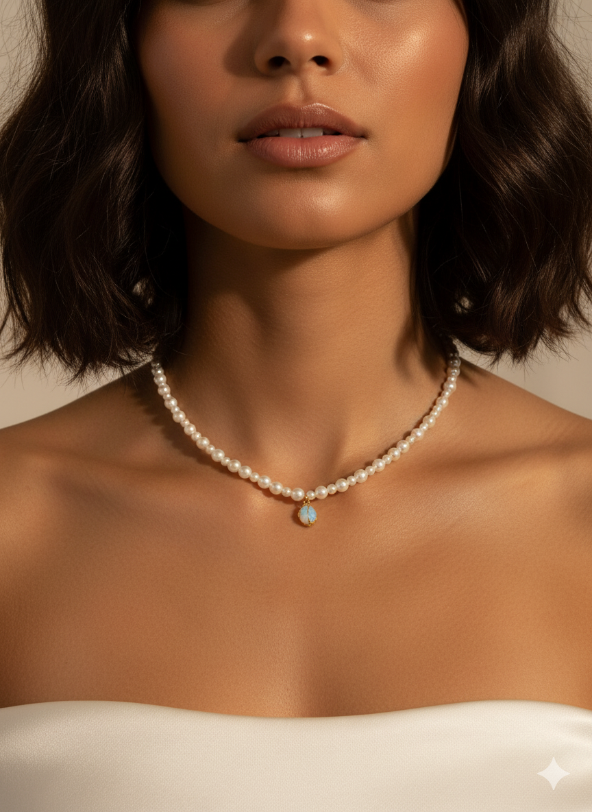 Altın Tel Sarılmış Değerli Taş İnci Kolye