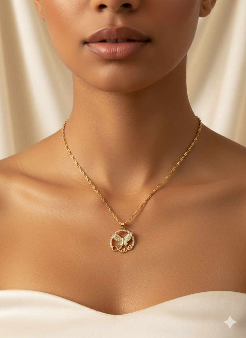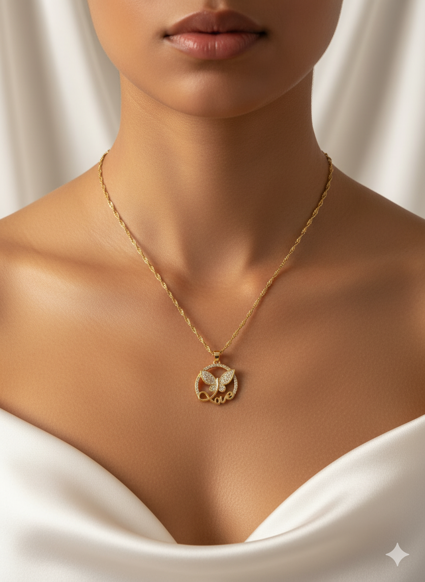 Zarif bir zincir ve taç detaylı çift kalp kolye ucuyla şık bir altın kolye. Aşkı, birliği ve romantizmi simgeleyen kolye ucu tasarımı, onu özel günler için mükemmel bir hediye haline getiriyor. Hafif ve zarif olan bu minimalist altın kolye, günlük kullanım için veya kadınlar ve kızlar için düşünceli bir mücevher hediyesi olarak idealdir.