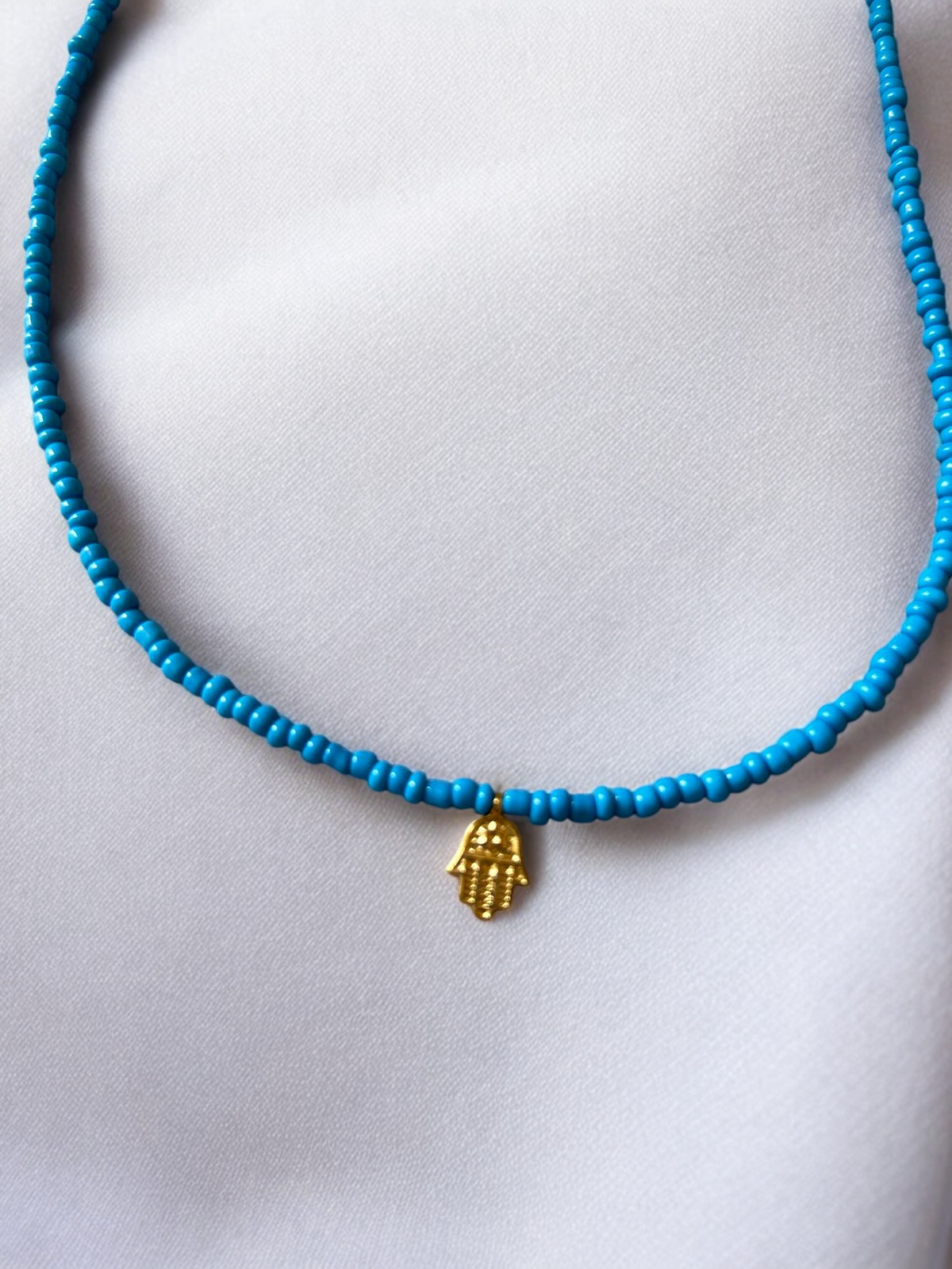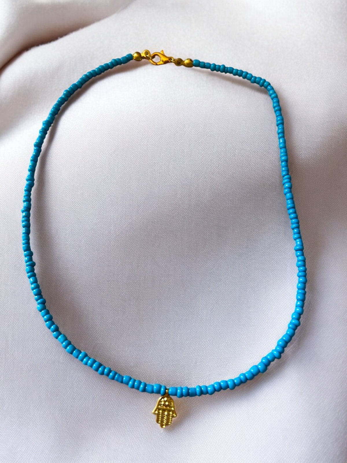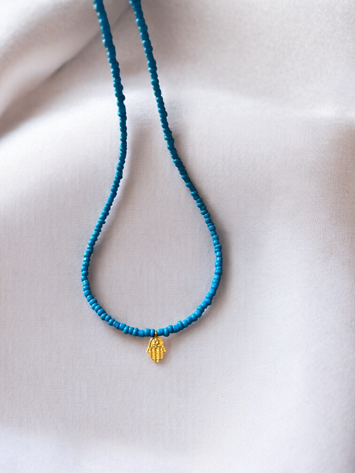 Turkuaz Boncuklu Altın Hamsa Eli Kolye – Kadın Takı